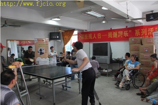 上午10點,主辦單位代表又來到了福州市肢殘人協(xié)會,積極參與了由福州市肢殘人協(xié)會舉辦的 “全國肢殘人日-殘健同樂”光板乒乓球聯(lián)誼賽。比賽進行得如火如荼,每位參與者臉上都掛著笑容,正如法國思想家伏爾泰說的“生命在于運動”。陽光的運動不僅給大家?guī)斫】?,也使人心情愉悅?BR>