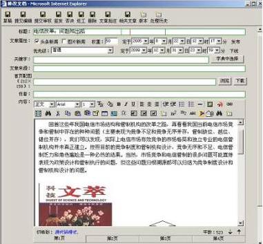 在這個平臺中,我們成功整合了原有的標(biāo)準(zhǔn)庫中的上萬條電信工程標(biāo)準(zhǔn)文檔,并建成“市場營銷”、“培訓(xùn)園地”、“規(guī)章法規(guī)”、“設(shè)計(jì)標(biāo)準(zhǔn)”、“情報(bào)”、“質(zhì)量管理”等欄目,并為重點(diǎn)部門建成部門門戶,方便企業(yè)內(nèi)部進(jìn)行知識共享與交流。