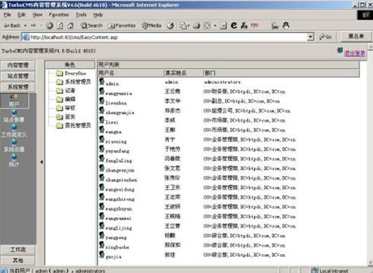 在知識管理中,流程也是一個重要的環(huán)節(jié)。TurboCMS本身內(nèi)置可定義的工作流,同時,系統(tǒng)提供COM+接口,可與工作流系統(tǒng)進(jìn)行集成。從而支持企業(yè)內(nèi)部的業(yè)務(wù)流程。