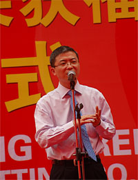 圖為QAD中國區(qū)總經(jīng)理繆青先生在儀式上祝詞