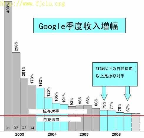 據(jù)國外媒體4月23日引述美國分析師的報告說,美國搜索巨頭Google公司目前仍然保持了超過60%的季度收入增幅,與此同時,Google公司的市場份額增加部分卻在減少。分析師認(rèn)為,Google公司的收入增長,已經(jīng)從“掠奪”競爭對手轉(zhuǎn)移到了“自我造血”。