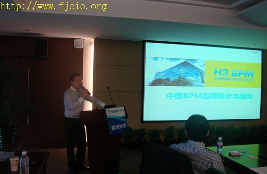 圖四、福建CIO網(wǎng) CEO:謝磊介紹中國(guó)兩化融合咨詢服務(wù)平臺(tái)及2014年福建平臺(tái)重點(diǎn)工作