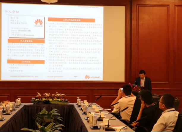 第二個(gè)議程由華為ICT規(guī)劃咨詢(xún)部咨詢(xún)總監(jiān)彭小軍帶來(lái)“華為流程信息化實(shí)踐分享”的主題演講。