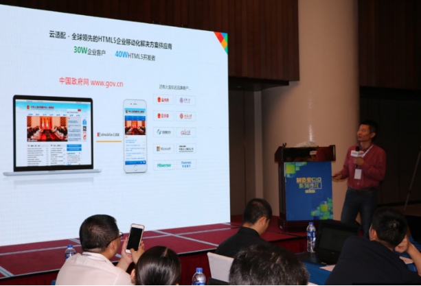 圖十一 云適配創(chuàng)始人兼CEO陳本峰介紹H5企業(yè)移動(dòng)化解決方案