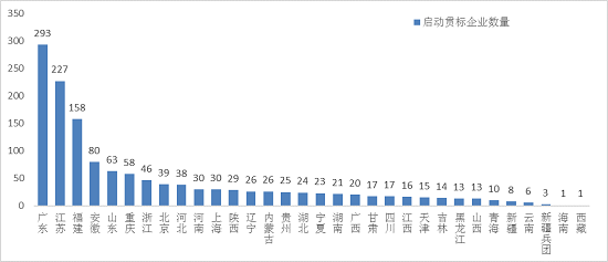 圖1-1 各省啟動兩化融合管理體系貫標企業(yè)數(shù)量