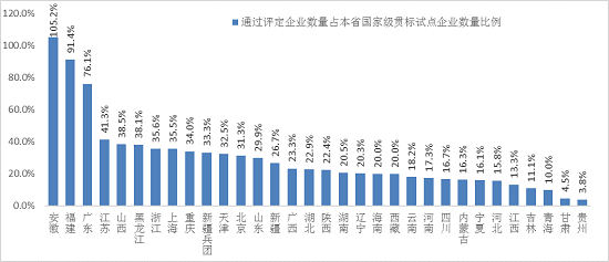 圖1-6 各省已經(jīng)通過評定企業(yè)數(shù)量占本省國家級貫標試點企業(yè)數(shù)量比例[1](截至2017年1月26日)