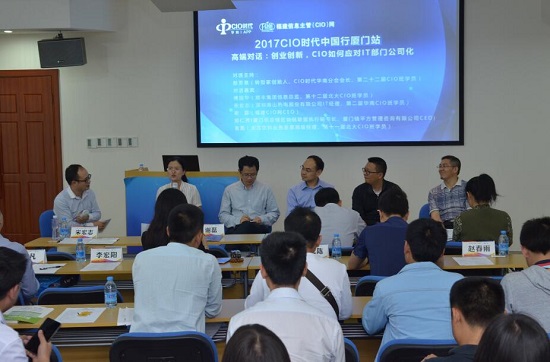 下午時分,在高端對話環(huán)節(jié)中,由轉(zhuǎn)型家創(chuàng)始人、CIO時代華南分會會長、第二十二屆CIO班學(xué)員彭芳泉主持,參與對話的嘉賓為:順豐集團(tuán)信息總監(jiān)、第十二屆北大CIO班學(xué)員傅國華,深圳南山熱電IT經(jīng)理、第二屆華南CIO班學(xué)員宋宏志, 福建CIO網(wǎng)CEO謝磊,廈門供應(yīng)鏈區(qū)塊鏈聯(lián)盟執(zhí)行秘書長、廈門鏈平方管理咨詢有限公司CEO鄭仁芳,太古飲料業(yè)務(wù)發(fā)展高級經(jīng)理、第十一屆北大CIO班學(xué)員袁勇。他們圍繞議題“創(chuàng)業(yè)創(chuàng)新,CIO如何應(yīng)對IT部門公司化”,針對企業(yè)轉(zhuǎn)型、公司戰(zhàn)略、技術(shù)轉(zhuǎn)變、服務(wù)運營、業(yè)務(wù)流程的創(chuàng)新以及CIO的思維等關(guān)鍵詞,紛紛結(jié)合自身的經(jīng)驗進(jìn)行了深入的分享和交流。