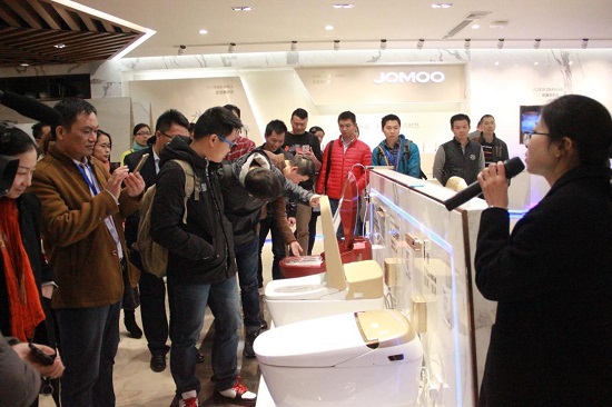 ?圖2:與會嘉賓在九牧店效中心參觀九牧產(chǎn)品