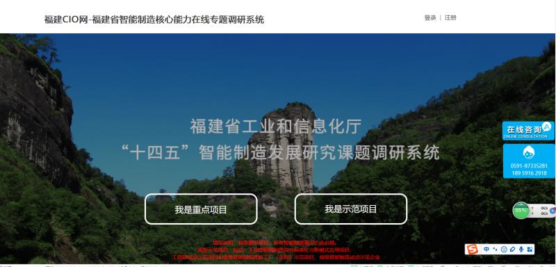 福建省智能制造重點(diǎn)項(xiàng)目企業(yè)共362家,智能制造試點(diǎn)示范企業(yè)共93家,2019年福建省省級(jí)智能制造重點(diǎn)項(xiàng)目企業(yè)221家,本地區(qū)所有智能制造重點(diǎn)企業(yè)請(qǐng)?zhí)顚憽拔沂侵攸c(diǎn)項(xiàng)目”(福建省智能制造重點(diǎn)項(xiàng)目企業(yè)需求調(diào)研問(wèn)卷);此外,省級(jí)及以上智能制造試點(diǎn)示范企業(yè)需要填寫兩份問(wèn)卷①“我是重點(diǎn)項(xiàng)目”(福建省智能制造重點(diǎn)項(xiàng)目企業(yè)需求調(diào)研問(wèn)卷);②“我是試點(diǎn)示范”(智能制造核心能力測(cè)評(píng)問(wèn)卷),請(qǐng)認(rèn)真填寫問(wèn)卷,除非特別說(shuō)明,請(qǐng)不要缺項(xiàng)。請(qǐng)于10月25日前填寫報(bào)送。填報(bào)過(guò)程有疑問(wèn)的可直接聯(lián)系謝磊先生,聯(lián)系電話:0591-87335281 、18959162918(微信同步),電子郵箱:admin@fjcio.org;也可通過(guò)福建CIO網(wǎng)(http://im.fjcio.cn)在線客服咨詢,頁(yè)面如圖2