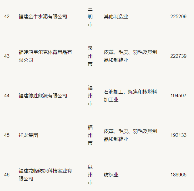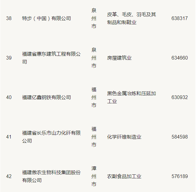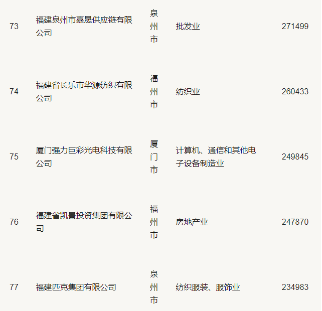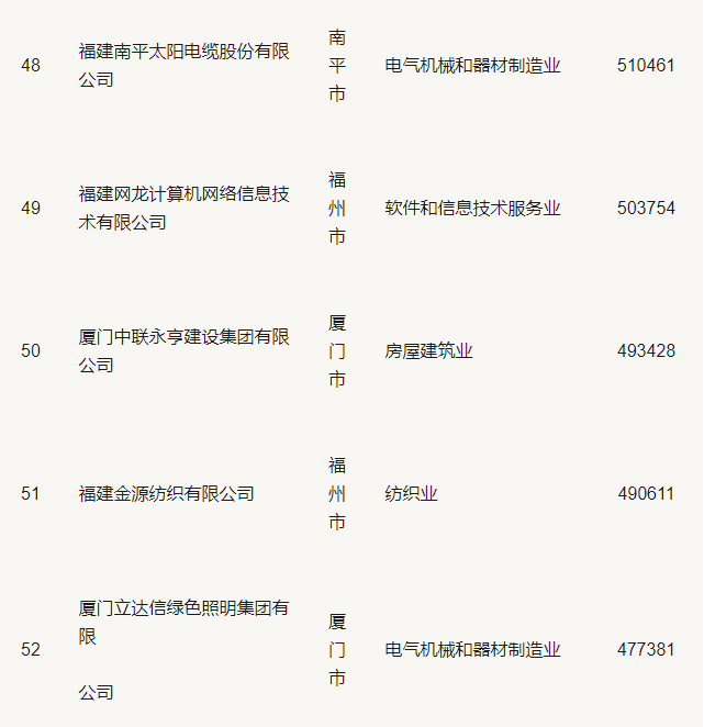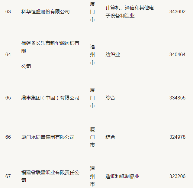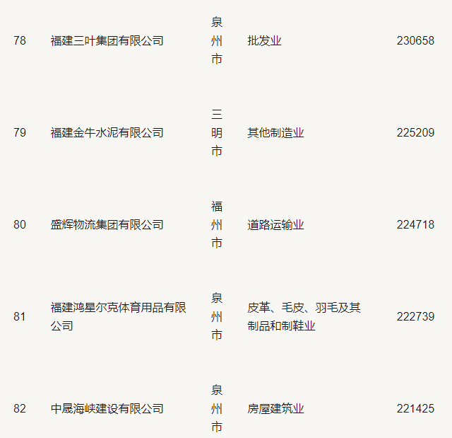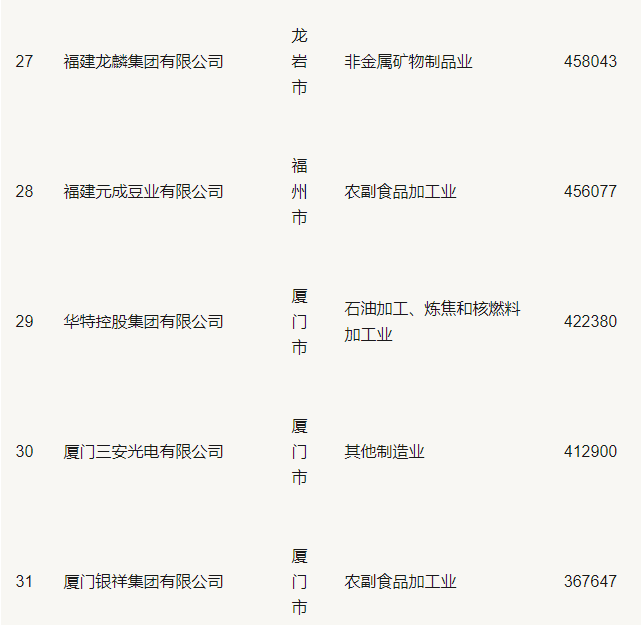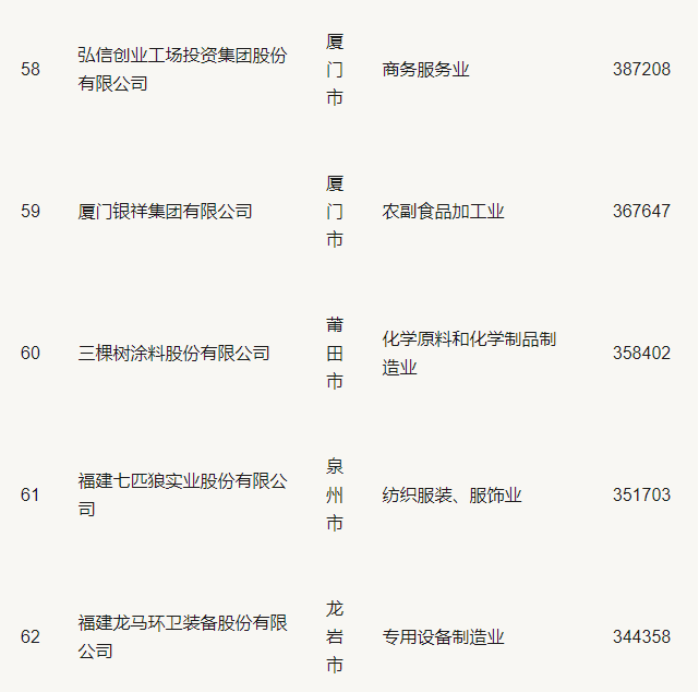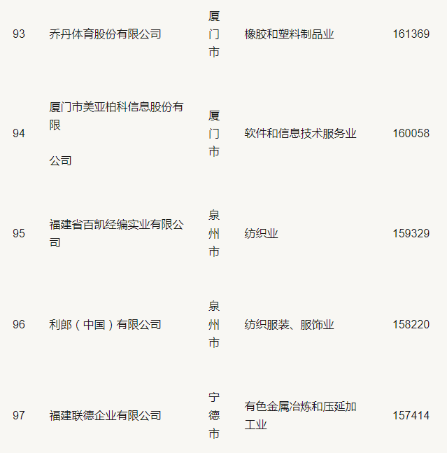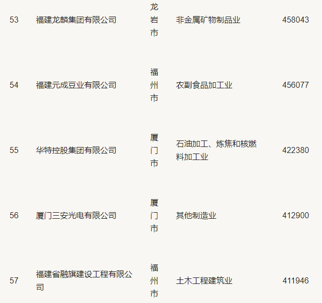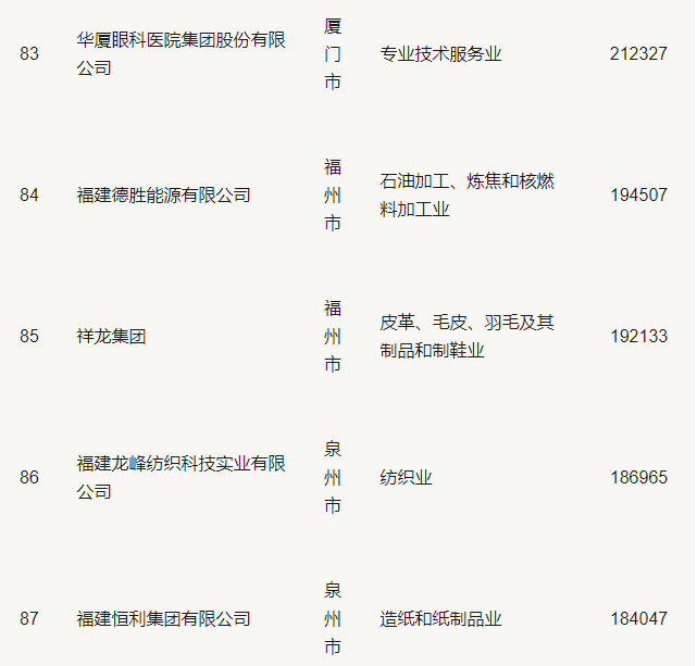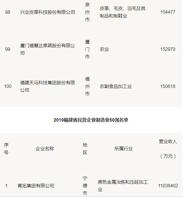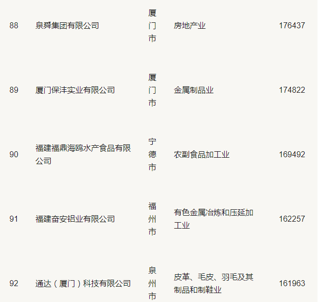 2019福建省民營企業(yè)100強(qiáng)名單