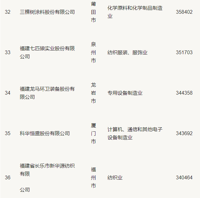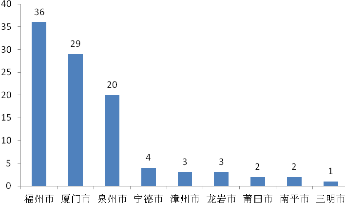福州市、廈門市和泉州市等3個(gè)城市共有85家企業(yè)入圍,占比超過八成,其中福州市36家,較上年增加5家;廈門市29家,較上年增加2家;泉州市20家,入圍企業(yè)下降幅度最大,較上年減少5家,降幅達(dá)20%。