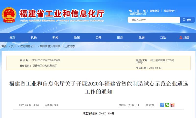 文),我廳決定開展2020年福建省智能制造試點(diǎn)示范企業(yè)遴選工作,現(xiàn)將有關(guān)事項(xiàng)通知如下:一、申報(bào)條件