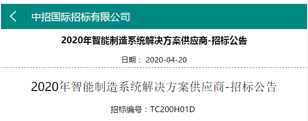本2020年智能制造系統(tǒng)解決方案供應(yīng)商項目已由項目審批/核準(zhǔn)/備案機(jī)關(guān)批準(zhǔn),項目資金來源為中央財政資金,招標(biāo)人為工業(yè)和信息化部裝備工業(yè)一司。本項目已具備招標(biāo)條件,現(xiàn)進(jìn)行公開招標(biāo)。