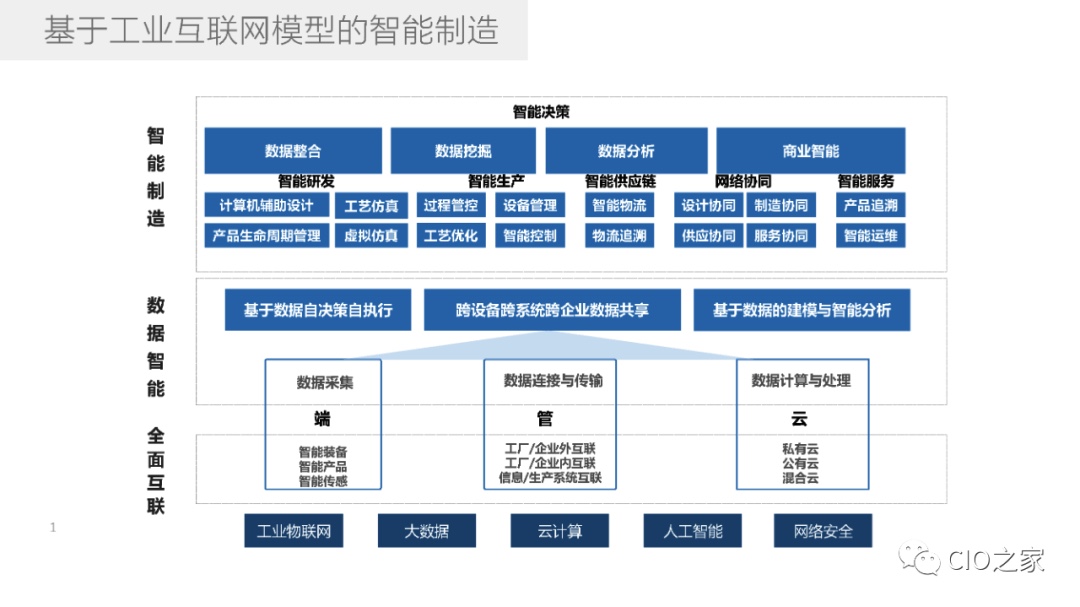 智能制造的實(shí)現(xiàn)主要依托兩方面的基礎(chǔ)能力:一個(gè)是工業(yè)制造技術(shù),包括先進(jìn)裝備、先進(jìn)材料和先進(jìn)工藝等,是決定制造邊界與制造能力的根本;另一個(gè)就是工業(yè)互聯(lián)網(wǎng),即基于物聯(lián)網(wǎng)、云計(jì)算、大數(shù)據(jù)、人工智能等新一代信息技術(shù),充分發(fā)揮工業(yè)裝備、工藝和材料潛能,提高生產(chǎn)效率、優(yōu)化資源配置效率、創(chuàng)造差異化產(chǎn)品和實(shí)現(xiàn)服務(wù)增值。工業(yè)互聯(lián)網(wǎng)是實(shí)現(xiàn)智能制造的關(guān)鍵使能技術(shù),為智能制造提供了關(guān)鍵的共性基礎(chǔ)設(shè)施,為其他產(chǎn)業(yè)的智能化發(fā)展提供了重要支撐。