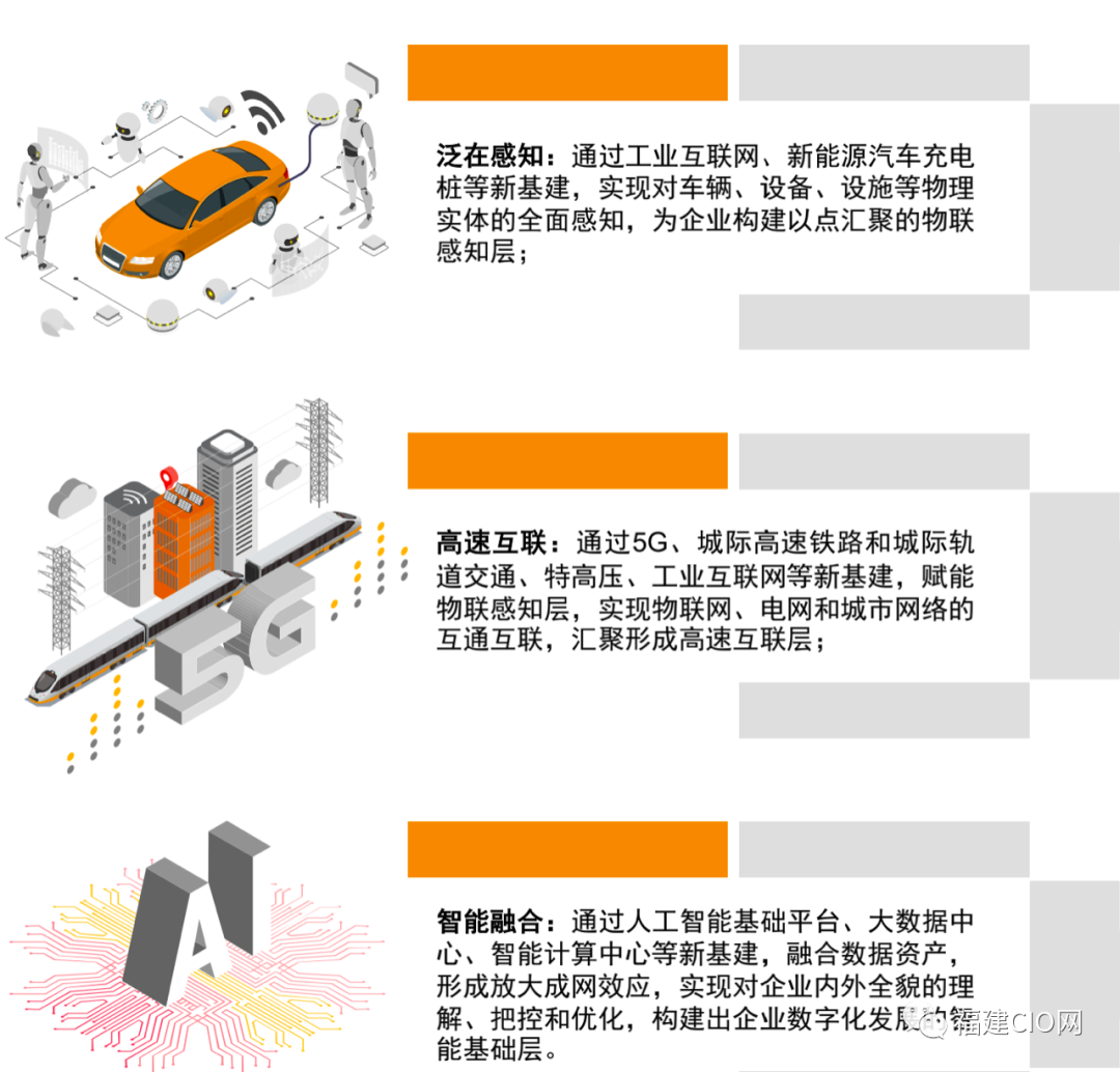 新型基礎(chǔ)設(shè)施建設(shè)的實質(zhì)是利用日漸成熟的新技術(shù),為數(shù)字經(jīng)濟(jì)打造泛在感知、高速互聯(lián)、智能融合三項基礎(chǔ)能力。