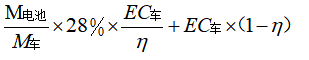 動力電池主要功能是為電動汽車提供電力,其使用階段的能耗可分成兩部分:來源于電池充放電過程的電能損耗;來源于電動汽車承載電池重量所增加的電能損耗。為評價該階段能耗,假設(shè)車輛本身重量引起的能量消耗為電動汽車能量消耗的28%,動力電池平均充電效率為76.5%。則鋰電池使用階段能耗計算公式為