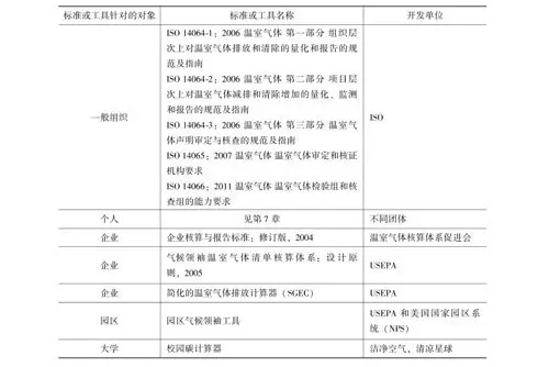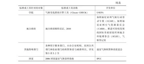 1996年 IPCC發(fā)布了《國(guó)家溫室氣體清單》、《國(guó)家溫室氣體清單優(yōu)良作法指南和不確定性管理》、《土地利用、土地利用變化和林業(yè)優(yōu)良作法指南》 (IPCC,1996a,1996b,1996c)。2001年溫室氣體核算體系促進(jìn)會(huì)發(fā)布了在IPCC文獻(xiàn)指南的基礎(chǔ)上形成的企業(yè)溫室氣體核算體系標(biāo)準(zhǔn)。自此之后,各種工具、標(biāo)準(zhǔn)和規(guī)范相繼發(fā)布,有些甚至是針對(duì)某個(gè)特定部門的。