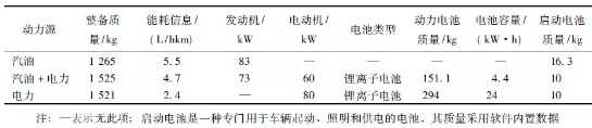 表1 車型主要參數(shù)