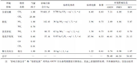 表6 GICEV、PHEV與BEV的環(huán)境影響負荷