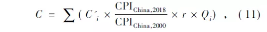 式中:C為我國污染物的總環(huán)境成本;C‘i為2000年美國第i種污染物的單位排放成本中間值(孟先春,2007);Qi為第i種污染物的排放量。2018年我國CPI為102.1,2000年CPI為100.4,2018年美元兌人民幣平均匯率r為6.617 4(國家統(tǒng)計局,2019b)。計算得3種汽車全生命周期環(huán)境成本分別為:GICEV約為2.27萬元,PHEV約為1.81萬元,BEV約為1.56萬元。由此可見,兩種電動汽車均能減少環(huán)境成本,其中BEV全生命周期環(huán)境成本最低,是最值得推廣的汽車。