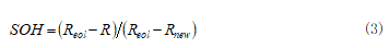 通過內阻變化表征電池健康狀態(tài)的SOH如式(3)所示