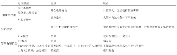 表 1? ?鋰離子電池模型的優(yōu)缺點分析