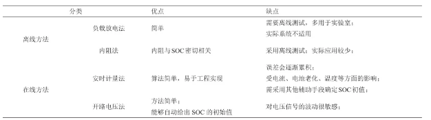負載放電法在電池停止工作時對電池放電到截至電壓,通過放電容量推導放電前的電池SOC。內阻法通過在開路狀態(tài)下測算電池內阻推導SOC。這兩種方法都屬于離線測量,在實際情況中不適用。