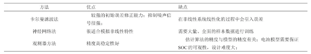 表3? ?基于等效電路模型的SOC估計數(shù)學方法優(yōu)缺點對比
