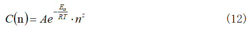 式中,A為常數(shù);Ea為活化能;R為氣體常數(shù);T為溫度;n為循環(huán)次數(shù)。
