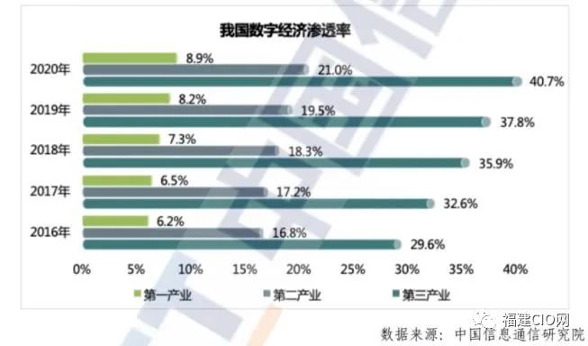 我國數(shù)字經(jīng)濟(jì)對第三產(chǎn)業(yè)的滲透率遠(yuǎn)高于一二產(chǎn)業(yè)