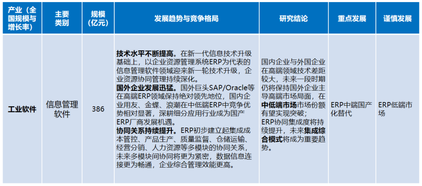 信息管理軟件。國內(nèi)企業(yè)與外國企業(yè)在高端領(lǐng)域技術(shù)差距較大,未來一段時(shí)期仍將保持國外企業(yè)主導(dǎo)高端市場(chǎng)局面,在中低端市場(chǎng)市場(chǎng)份額有望實(shí)現(xiàn)突破;ERP協(xié)同集成度將持續(xù)提升,未來集成綜合模式將成為重要趨勢(shì)。