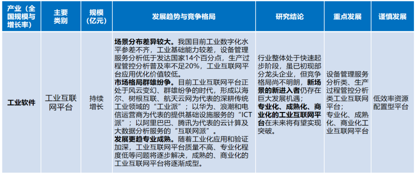 工業(yè)互聯(lián)網(wǎng)平臺(tái)。行業(yè)整體處于快速起步階段,雖已初現(xiàn)部分龍頭企業(yè),但競(jìng)爭(zhēng)格局尚不明朗,新場(chǎng)景的新進(jìn)入者仍存在巨大發(fā)展機(jī)遇;專業(yè)化、成熟化、商業(yè)化的工業(yè)互聯(lián)網(wǎng)平臺(tái)在未來將有望實(shí)現(xiàn)突破。