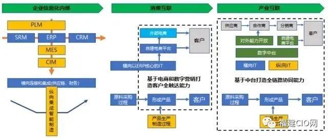 跨越企業(yè)內(nèi)部邊界到外部,談得最多的就是消費互聯(lián)和產(chǎn)業(yè)互聯(lián)。這種互聯(lián)當天實踐最多的就是快消行業(yè)或直接面對C端客戶的行業(yè)。