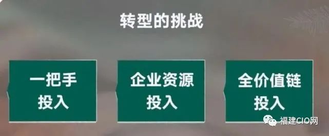 其次是整個全企業(yè)的所有資源、人力、維護都要投入進去參與轉型;