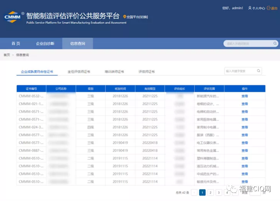 企業(yè)獲證信息可在智能制造能力成熟度評(píng)估評(píng)價(jià)公共服務(wù)平臺(tái)“信息查詢(xún)”欄目中公開(kāi)查詢(xún)。