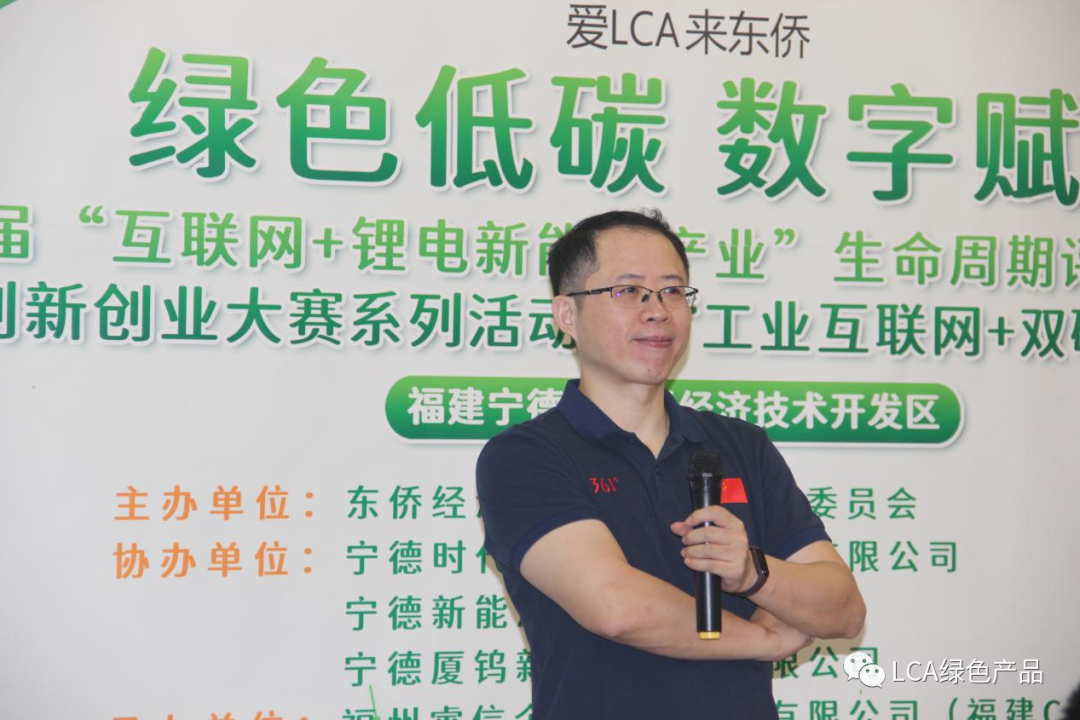 東僑經(jīng)濟(jì)技術(shù)開發(fā)區(qū)經(jīng)濟(jì)發(fā)展局葉兆斌博士介紹東僑創(chuàng)建綠色園區(qū)和首屆“互聯(lián)網(wǎng)+鋰電新能源產(chǎn)業(yè)”生命周期評價(LCA)創(chuàng)新創(chuàng)業(yè)大賽最新進(jìn)展情況。葉博士介紹到綠色發(fā)展理念是我國生態(tài)文明制度建設(shè)的頂層設(shè)計。東僑經(jīng)濟(jì)技術(shù)開發(fā)區(qū)認(rèn)真貫徹落實我國生態(tài)文明思想,積極推進(jìn)園區(qū)工業(yè)綠色轉(zhuǎn)型升級。圍繞本屆大賽“綠色低碳,數(shù)字賦能”的主題,大賽已于2022年1月7日成功啟動,由于疫情的影響,大賽截止日期調(diào)整為2022年12月31日。隨后還介紹了三個賽道的參賽報名情況,并鼓勵園區(qū)內(nèi)鋰電新能源產(chǎn)業(yè)企業(yè)積極參與綠色LCA實踐,讓“綠色”的種子生根發(fā)芽,茁壯成長。