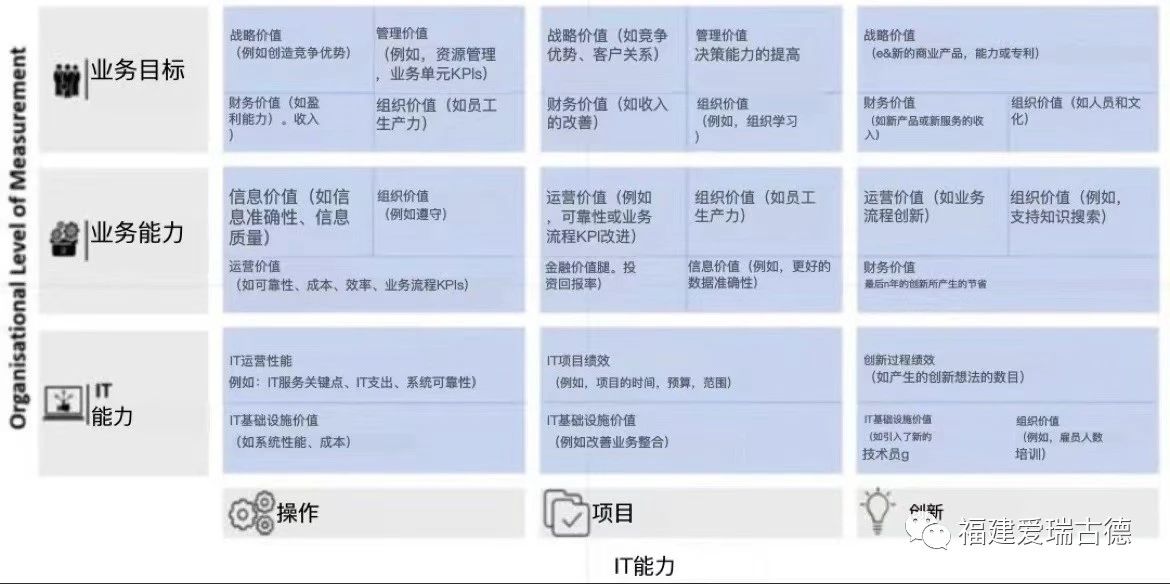 圖:【基于組織不同層級和不同IT能力兩個維度】衡量IT業(yè)務(wù)價值的3x3矩陣模型