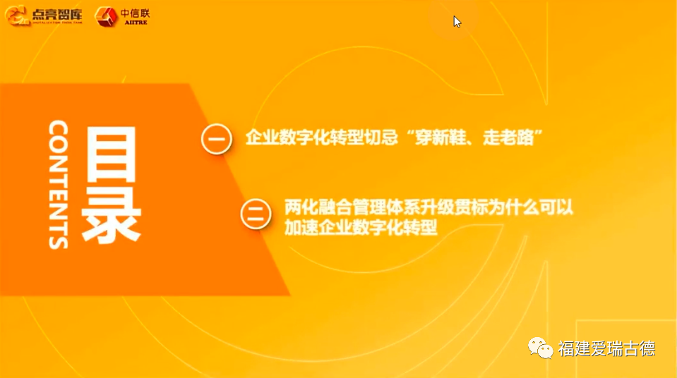 福建CIO網(wǎng):點亮智庫&中信聯(lián)3月29日在蘇州舉辦數(shù)字化轉(zhuǎn)型高峰論壇暨兩化融合管理體系升級版貫標(biāo)工作推進(jìn)會。邀請中信聯(lián)兩化融合管理體系評定委員會秘書長鄭永亮分享“以貫標(biāo)為牽引,加速企業(yè)數(shù)字化轉(zhuǎn)型”,以下根據(jù)直播內(nèi)容記錄、編輯。?