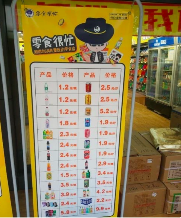 如何快速搶灘零食市場?零食很忙認為不能跟一線品牌硬剛,于是將目光鎖定在市占率60%左右的“低消市場”, 采用“更低價模式”,吸引人流。比如市場價每瓶2元的怡寶純凈水,零食很忙賣1.2元,每瓶3元的百歲山礦泉水,零食很忙賣1.8元,還有,可樂、雪碧、東方樹葉等飲料均低于賣場、便利店的市場價,一般比便利店、商超便宜好幾毛至一元以上。零食很忙以極致海量的流量思維,利用接近于工廠批發(fā)價的商品為門店引流,吸引周圍的各類消費者,盡管售價低廉,但仍薄利多銷。
