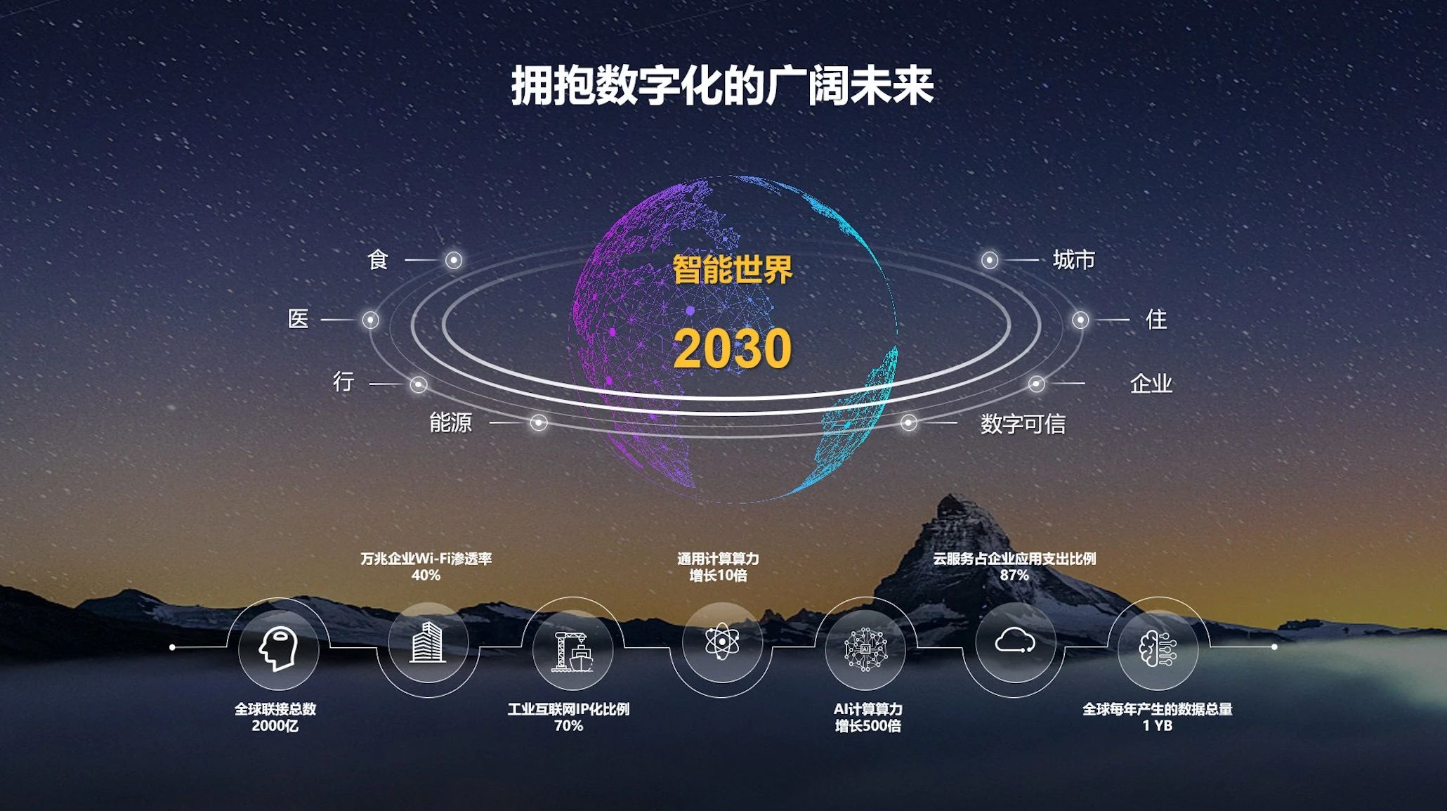 預(yù)計(jì)到 2030 年,全球聯(lián)接總量將突破 2000 億。與此同時(shí),企業(yè)網(wǎng)絡(luò)接入、家庭寬帶接入、個(gè)人無線接入將迎來萬兆聯(lián)接的時(shí)代;通用算力將增長(zhǎng)10倍、人工智能算力將增長(zhǎng)500倍。