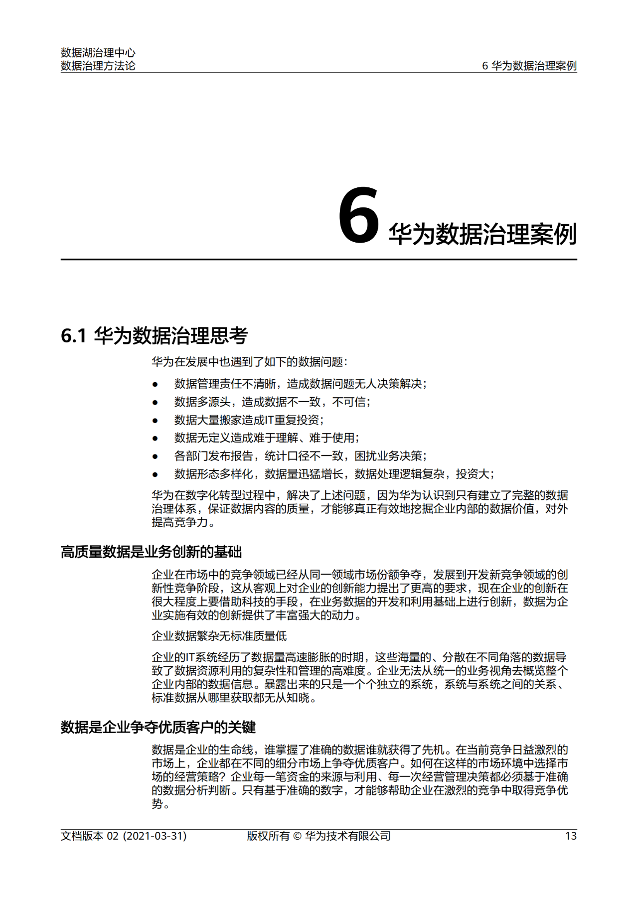 當前企業(yè)數據面臨很多問題:沒有統(tǒng)一的數據標準,各業(yè)務系統(tǒng)間數據無法充分共享,關鍵核心數據無法識別及跨系統(tǒng)無法拉通等。為有效管理企業(yè)數據資產,實現數據價值的最大化,急需建立一個完善數據治理框架體系,為企業(yè)數字化轉型打下堅實的數據基礎。