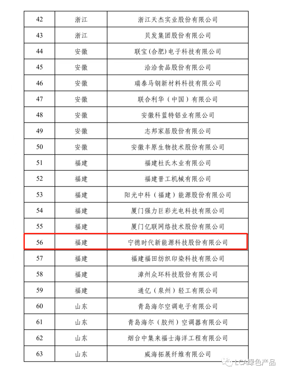 (綠色工廠公示名單截圖)