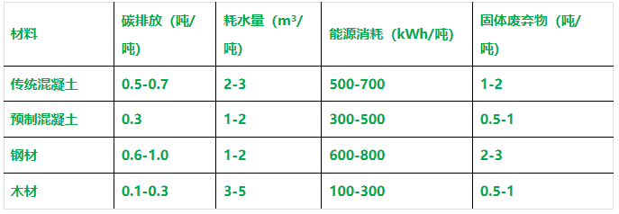 裝配式建筑材料如預(yù)制混凝土結(jié)構(gòu)的碳排放量較傳統(tǒng)建筑材料顯著降低。