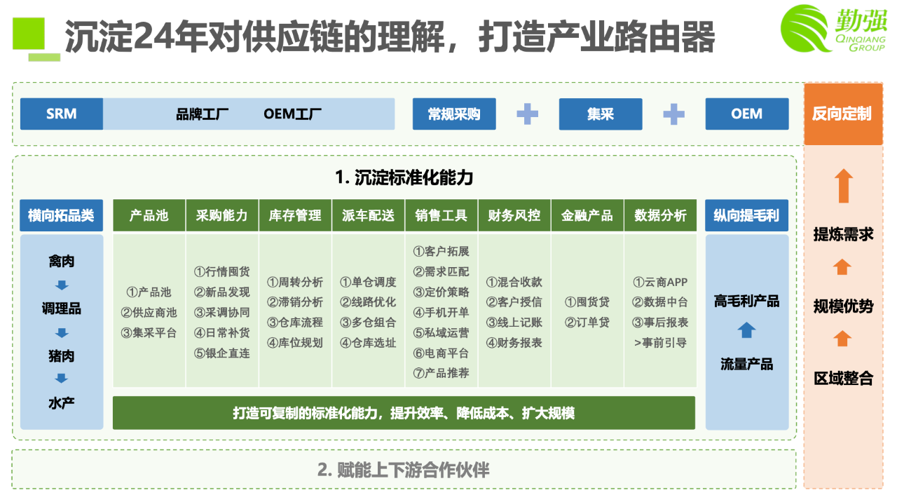 所以在2021-2022年我們對(duì)自己的定位進(jìn)行了調(diào)整,從純交易的角度轉(zhuǎn)變?yōu)橹腔酃?yīng)鏈,從工廠到干線物流、倉(cāng)儲(chǔ)、配送、交易的每一個(gè)環(huán)節(jié)都要實(shí)現(xiàn)最高效的價(jià)值變現(xiàn)。從2023年開(kāi)始,整個(gè)智慧供應(yīng)鏈體系已經(jīng)打造的比較成熟,為了讓成熟的智慧供應(yīng)鏈體系能夠產(chǎn)生價(jià)值變現(xiàn),能夠更好鏈接上下游的資源,讓它能夠?qū)崿F(xiàn)價(jià)值的快速裂變,從今年開(kāi)始定位又作了一些調(diào)整,把它稱為產(chǎn)業(yè)路由器。
