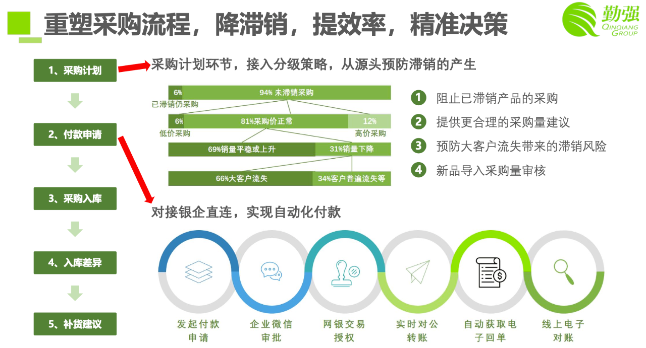 當(dāng)對(duì)所有部分拆解后,對(duì)采購(gòu)體系重新改造成智能化采購(gòu)系統(tǒng),從采購(gòu)計(jì)劃,到采購(gòu)入庫(kù),到付款審核,到供應(yīng)商分級(jí),從源頭入手去阻止滯銷的產(chǎn)生。