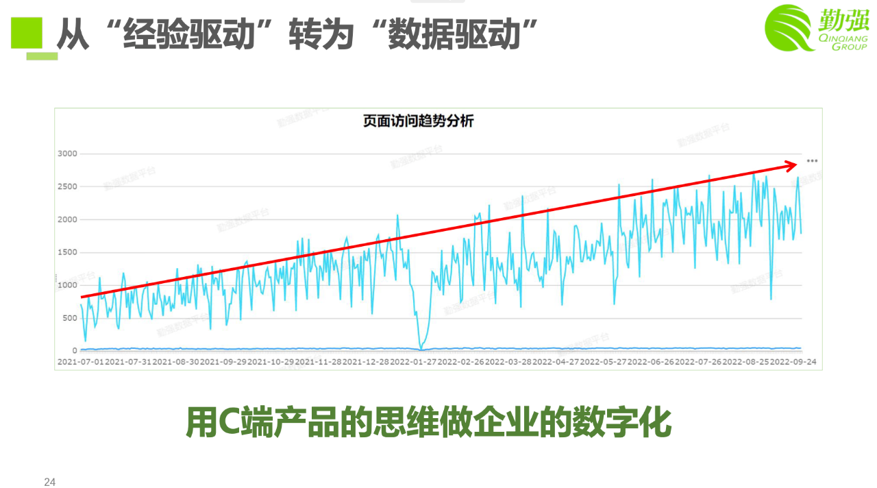 ---------對(duì)于企業(yè)的數(shù)據(jù)團(tuán)隊(duì)和IT團(tuán)隊(duì)來(lái)講,一定要從經(jīng)驗(yàn)驅(qū)動(dòng)轉(zhuǎn)變?yōu)閿?shù)據(jù)驅(qū)動(dòng),用C端產(chǎn)品的思維做企業(yè)的數(shù)字化,任何事情都要能夠看到用戶的行為數(shù)據(jù)。這個(gè)是我們內(nèi)部手機(jī)端的決策工具,會(huì)持續(xù)去跟蹤頁(yè)面的UV和PV,持續(xù)關(guān)注每個(gè)環(huán)節(jié)的重度使用情況,當(dāng)我們持續(xù)去跟蹤之后,就會(huì)發(fā)現(xiàn)內(nèi)部員工、內(nèi)部領(lǐng)導(dǎo)真實(shí)關(guān)注點(diǎn)在哪、到底是哪個(gè)環(huán)節(jié)。我們也會(huì)通過(guò)這樣一個(gè)工具和數(shù)據(jù)去證明整個(gè)數(shù)據(jù)團(tuán)隊(duì)在企業(yè)內(nèi)部產(chǎn)生的價(jià)值。
