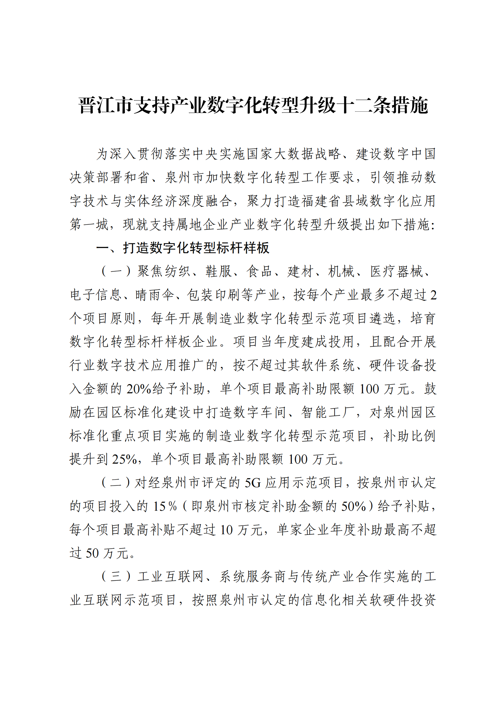 晉江市支持產業(yè)數字化轉型升級十二條措施