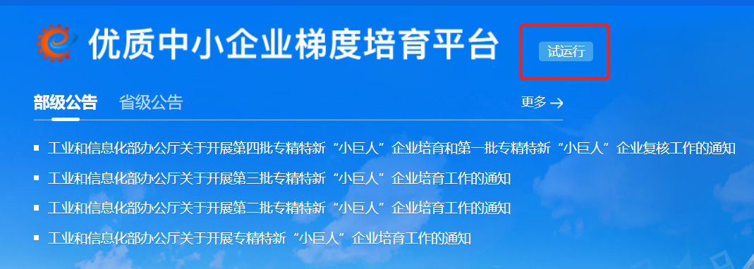 優(yōu)質(zhì)中小企業(yè)梯度培育平臺試運行,共開放三個窗口,分別是:
