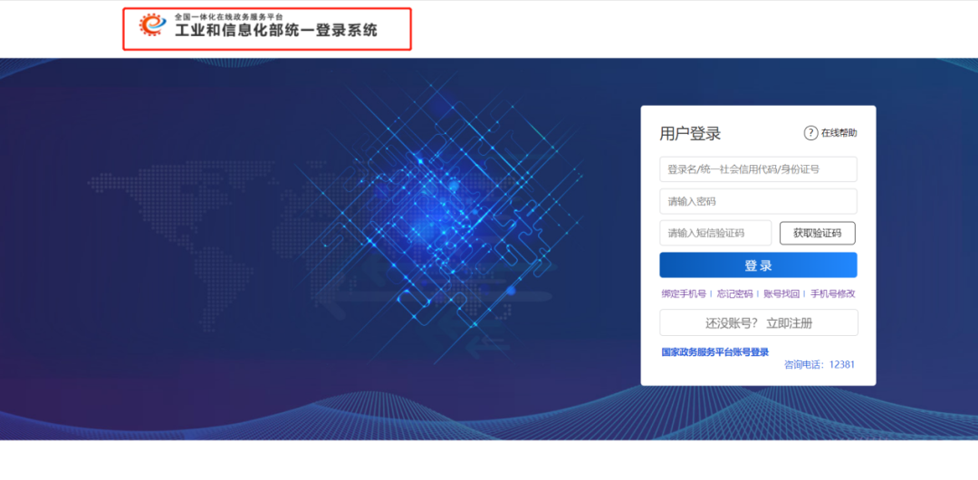 申報系統(tǒng)登錄使用的是工信部統(tǒng)一登錄系統(tǒng)平臺。