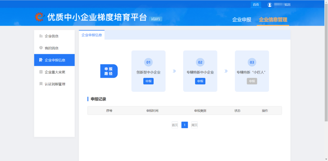 企業(yè)依據(jù)自身需求,從首頁企業(yè)申報頁面中進行申報。